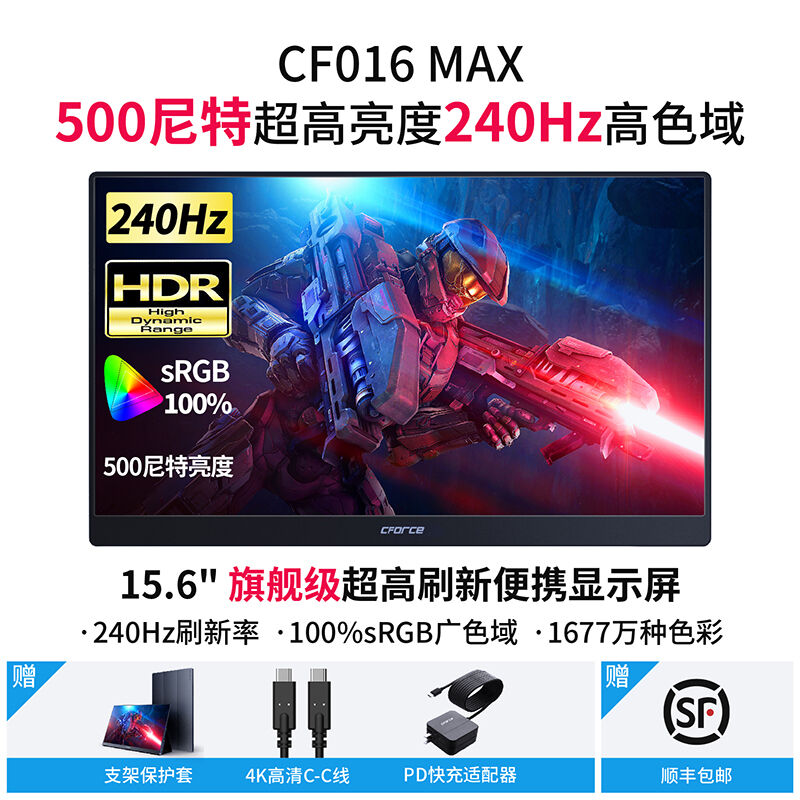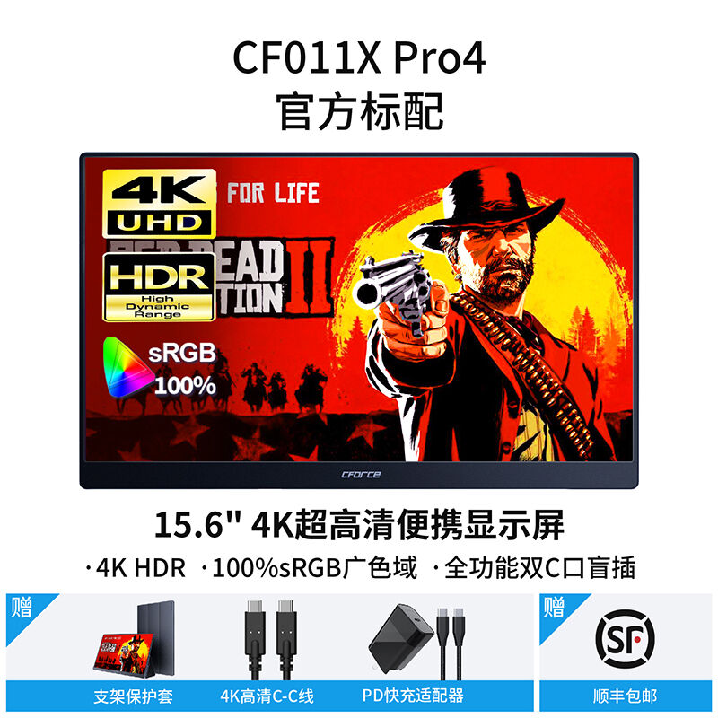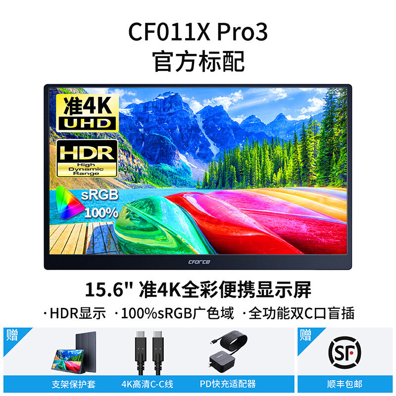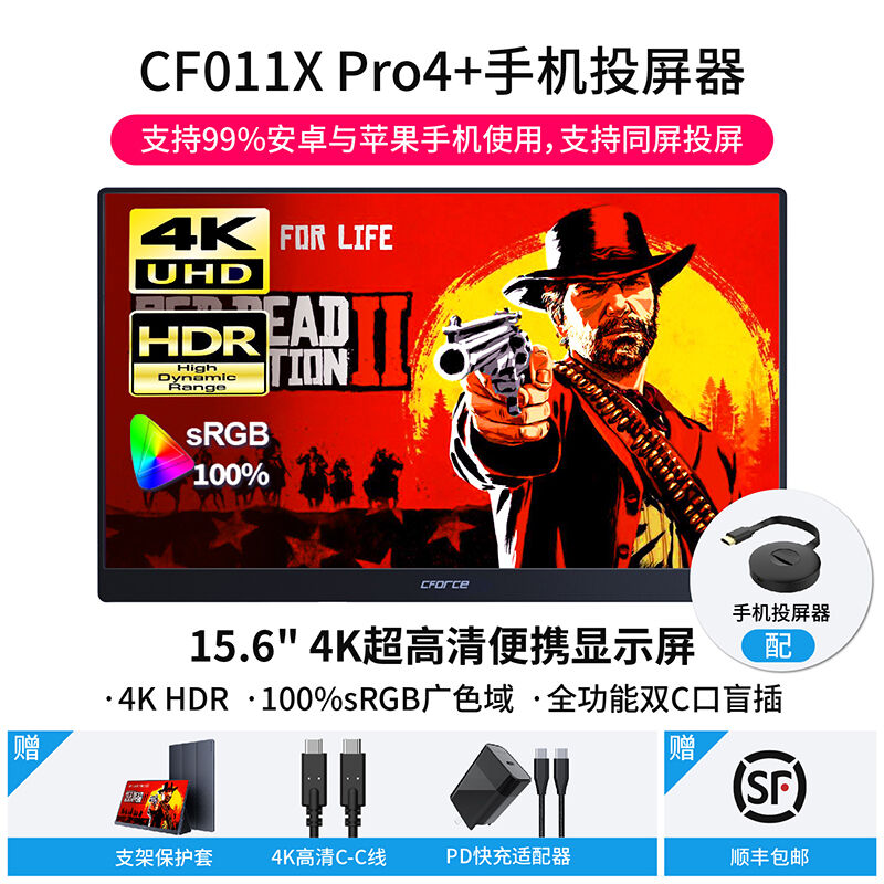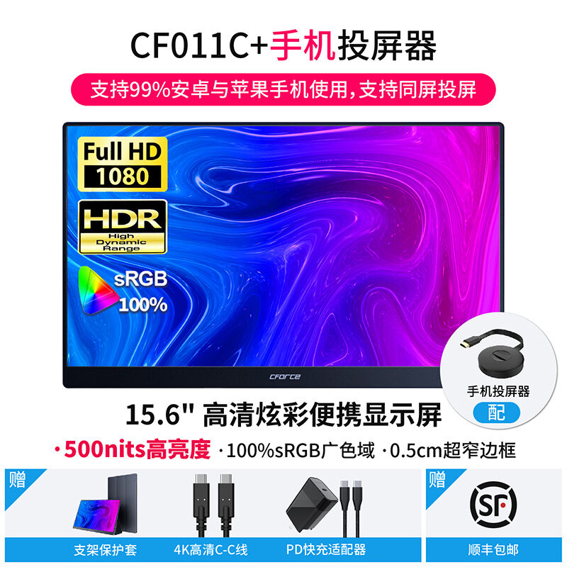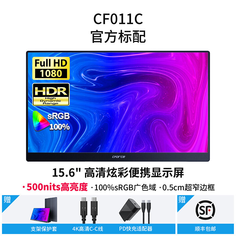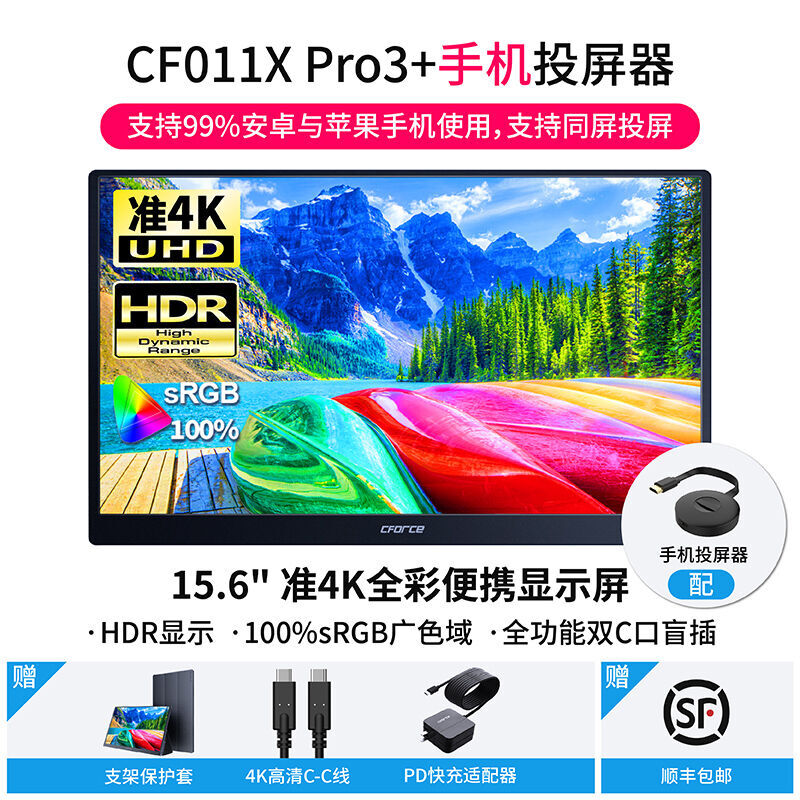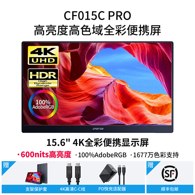 CFORCE便捷式显示器4K外接手机15.6英寸扩展投屏显示器CF011C笔记本外接显示器副屏switch外接屏幕便携显示屏