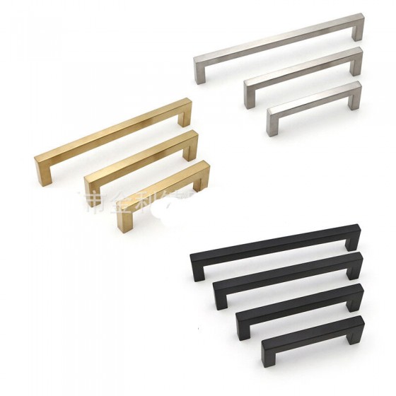 现代黑色橱柜拉手方形家具五金不锈钢厨房门把手橱柜衣柜抽屉拉手