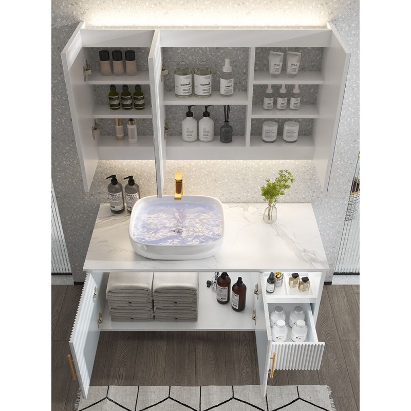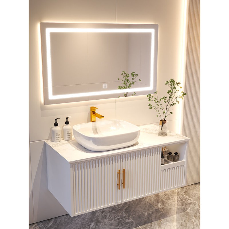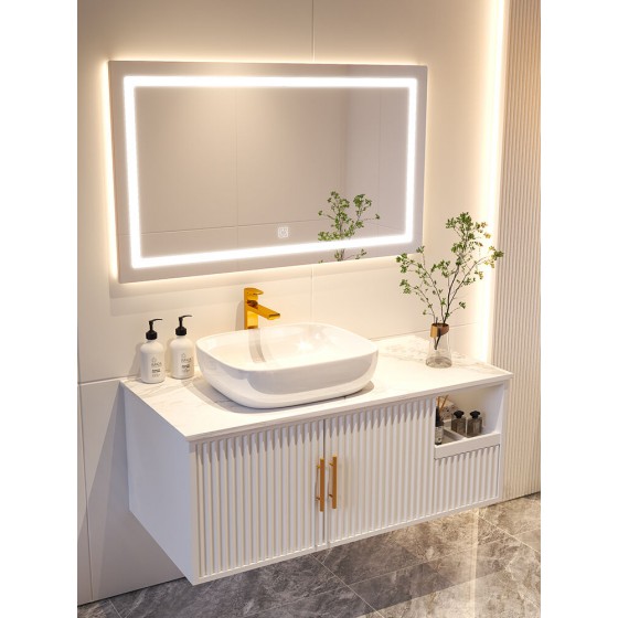 轻奢岩板一体盆浴室柜厕所卫生间智能镜洗漱