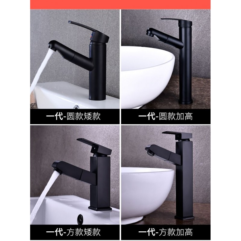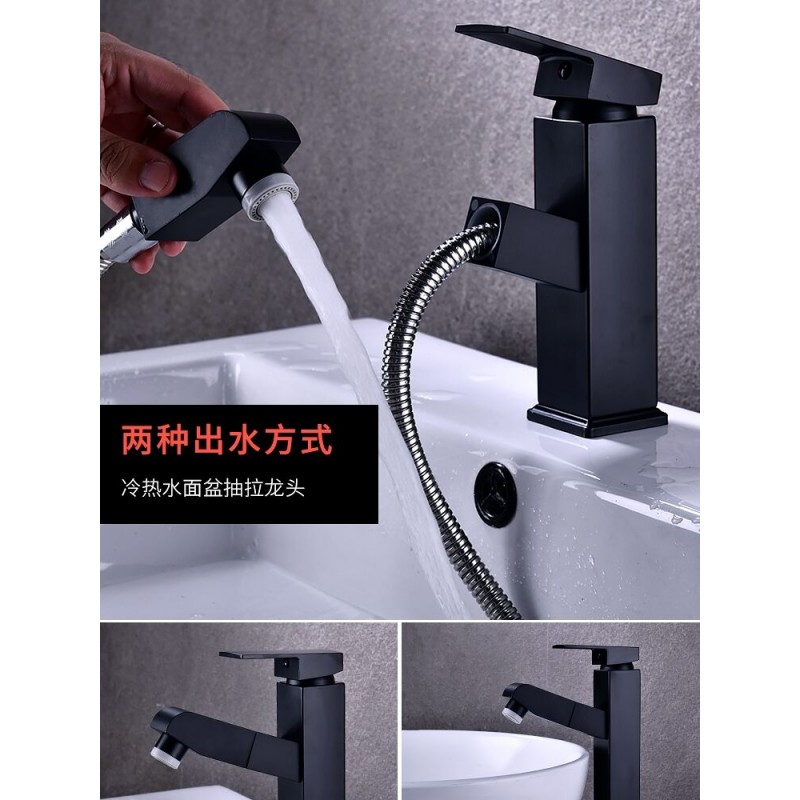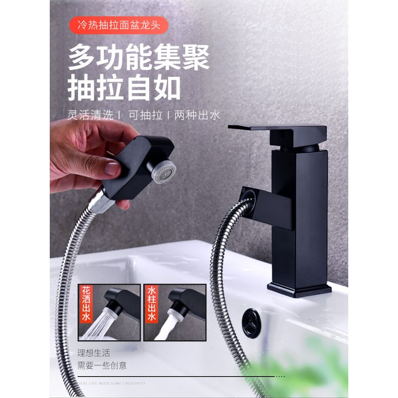 抽拉式冷热水龙头黑色全铜