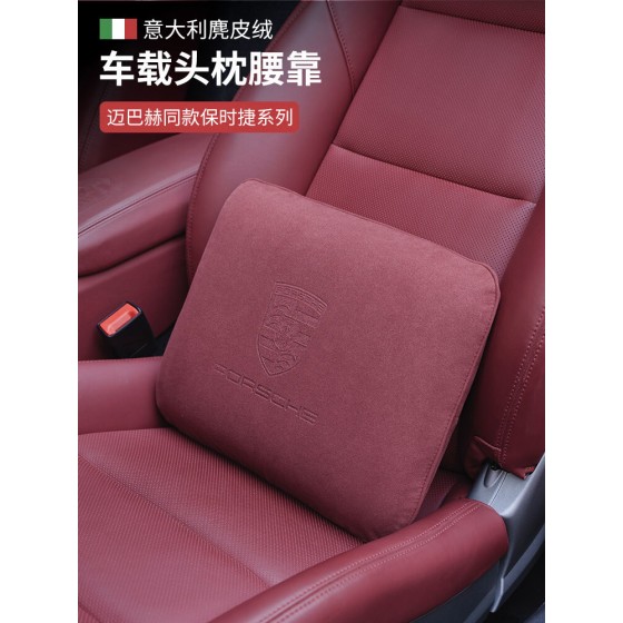 盾徽麂绒皮头枕腰靠垫汽车用品