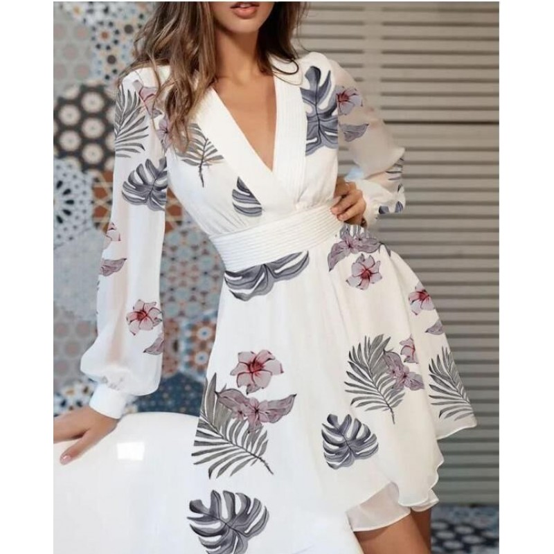 Floral Print V-Neck Long Sleeve Dress