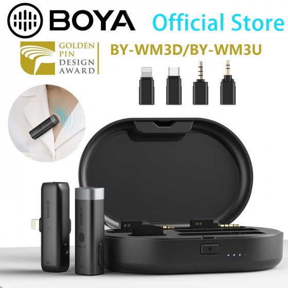 BY-WM3 is a 2 .4GHz wireless microphone system, an all-inclusive solution for making it ideal for capturing audio clearly. It's compatible with most smartphones, tablets, DSLR cameras consumer camcorders, PCs, etc. The charging case can charge the transmitters and receivers anywhere for a longer working time and it's rechargeable via a USB-C port Portable and lightweight body, BY-WM3 is designed for videographers, content creator, avid vlogger.